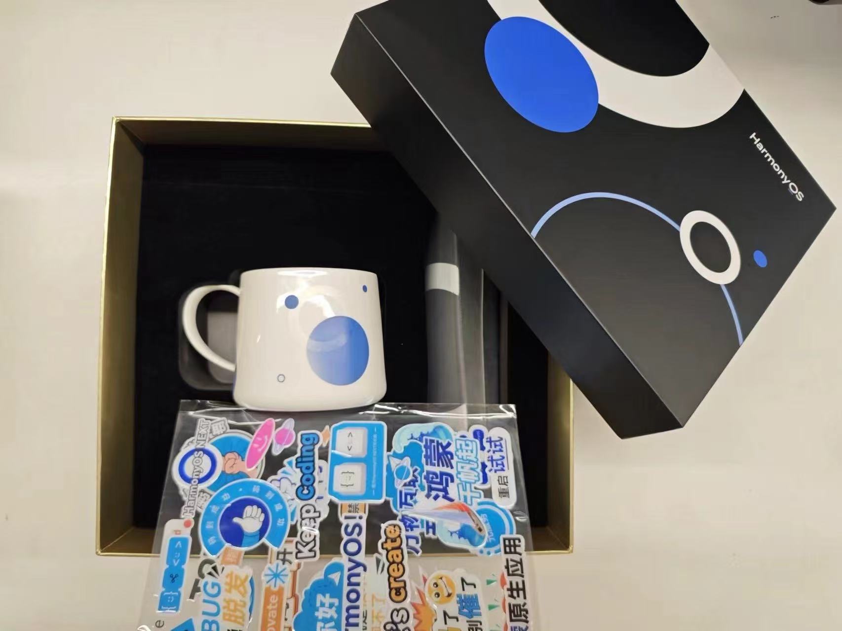 Harmonyos礼盒内含有马克杯,鼠标垫,贴纸(实际物品及颜色以华为官方的为准)