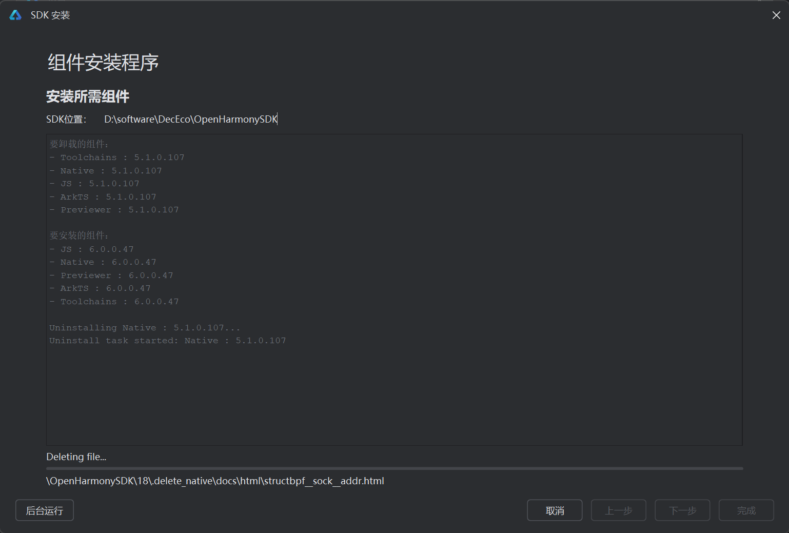 OpenHarmonySDK ---> 选择安装位置(全英文路径)---> 选择API版本(最新版即可)--->点击应用