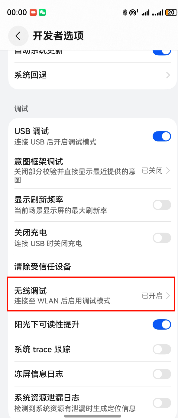 注意:无线调试需要电脑和手机连接同一个网络!!!