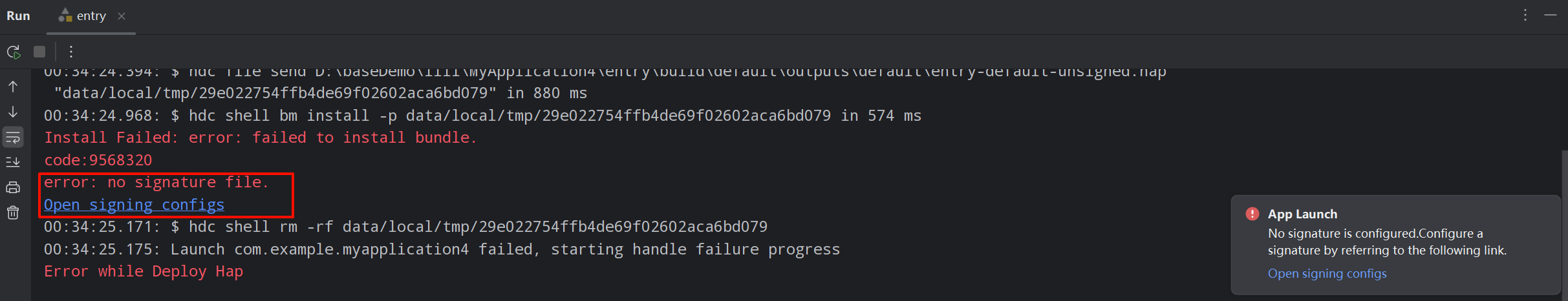不配置签名信息,会报以下错误(error: no signature file.),没有签名文件
