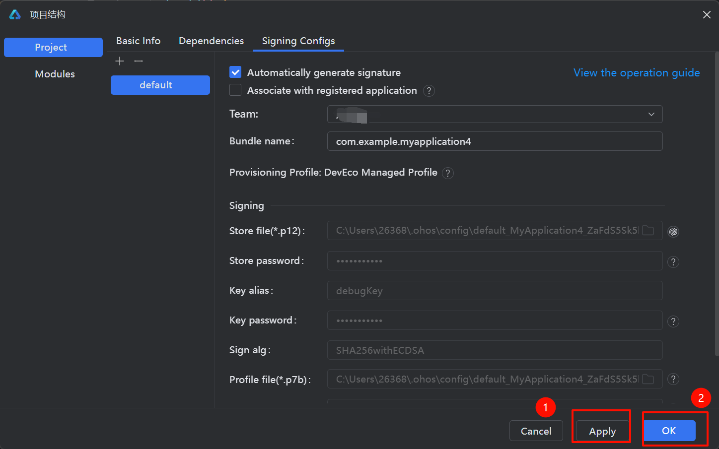 登录完成之后返回DevEco ---> 点击Apply(应用)---> OK