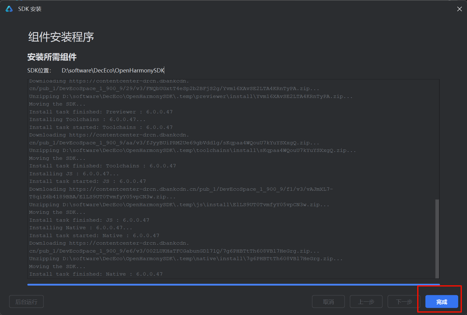 等待下载完成,完成之后点击完成