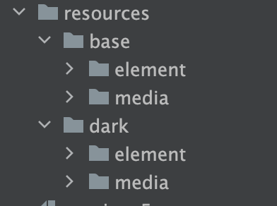 对于资源方式,我们可以在resources中新建dark,创建和浅色对应的颜色和图片资源即可,如下图所示: