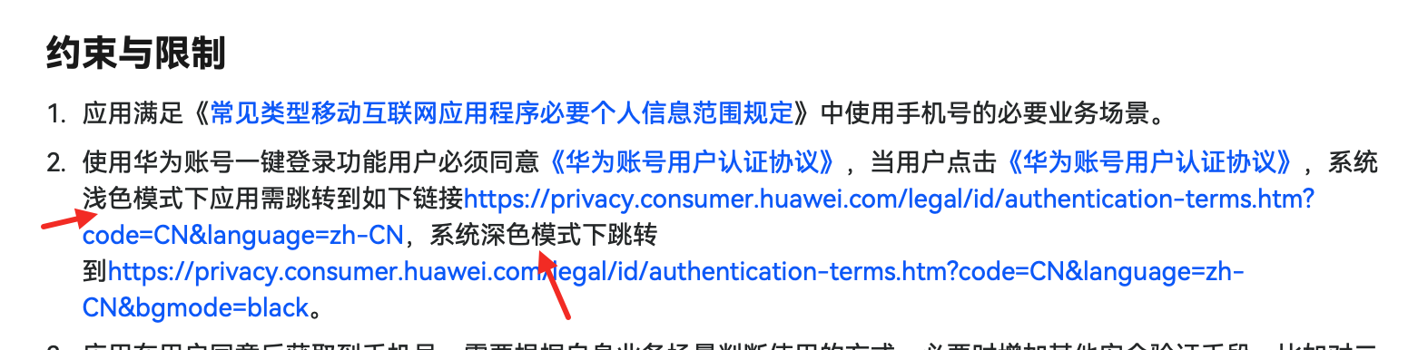 这种方式,说白了就是提供两个web页面,一个是浅色模式,一个是深色模式,我们检测到系统模式变化之后,动态的切换对应模式的页面即可,目前官方在某些功能里,也在使用这种方式,比如官方的一键登录功能,我们就可以发现,针对《认证协议》,就提供了一个浅色页面和一个深色页面。