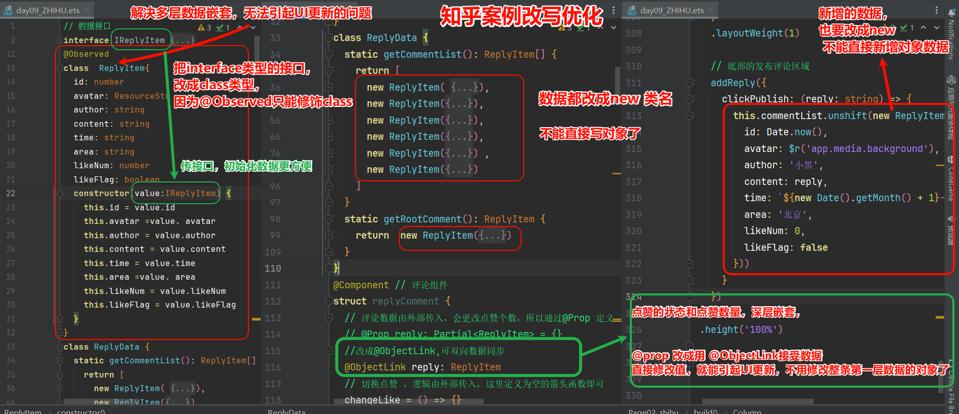 - interface 改为 类 class 并使用 @Observed 修饰组件中的变量