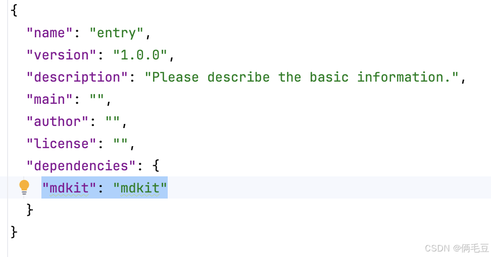 项目中配置了对mdkit(或其它三方库)的依赖,如在module中使用,还需要在module的oh-package.json5文件中增中对mdkit的依赖,如下图所示(为entry module)