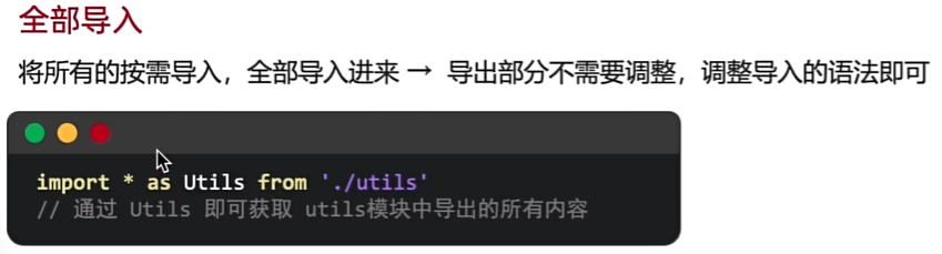 使用 import * as 模块名 可一次性导入模块内所有导出成员。