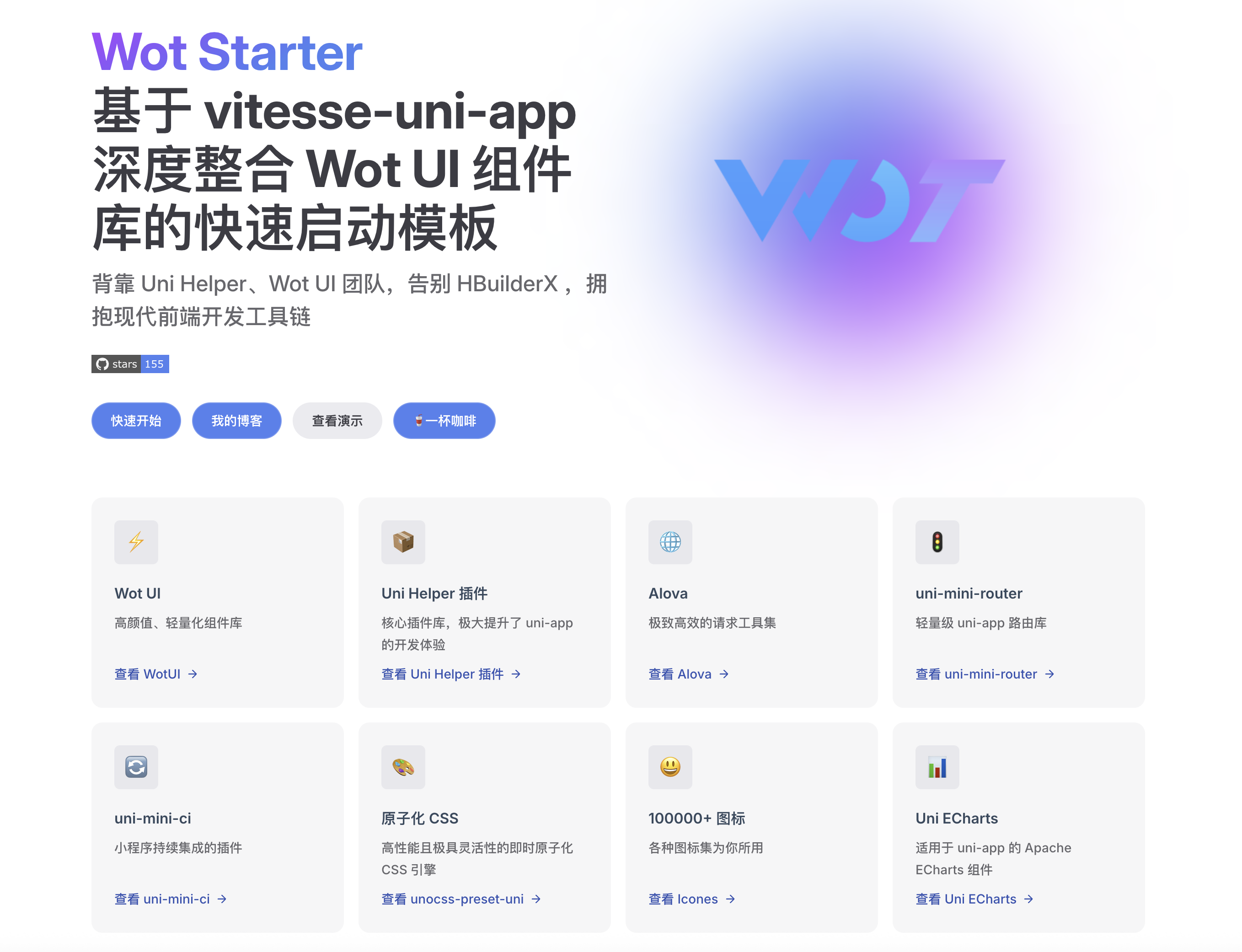 - wot-starter: 基于 vitesse-uni-app 深度整合 Wot UI 组件库的快速启动模板 https://starter.wot-ui.cn/