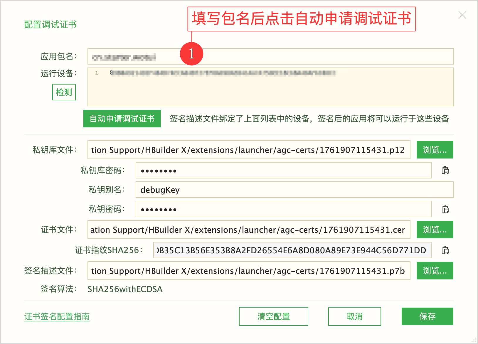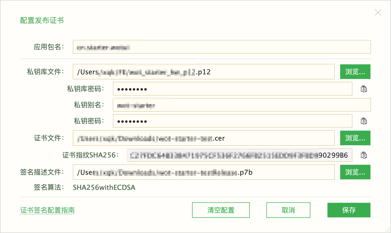 参考教程 https://developer.huawei.com/consumer/cn/doc/app/agc-help-add-releasecert-0000001946273961 申请发布证书并保存下来。