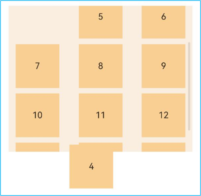 Column({ space: 5 }) { Grid(this.scroller) { ForEach(this.numbers, (day: string) => { GridItem() { Text(day) .fontSize(16) .backgroundColor(0xF9CF93) .width(80) .height(80) .textAlign(TextAlign.Center) } }) } .columnsTemplate('1fr 1fr 1fr') .columnsGap(10) .rowsGap(10) .width('90%') .backgroundColor(0xFAEEE0) .height('35%') // 设置Grid是否进入编辑模式,进入编辑模式可以拖拽Grid组件内部GridItem .editMode(true) .onScrollIndex((start: number, end: number) => { this.startIndex = start this.endIndex = end }) // 第一次拖拽此事件绑定的组件时,触发回调 .onItemDragStart((event: ItemDragInfo, itemIndex: number) => { this.text = this.numbers[itemIndex] this.currentIndex = itemIndex // 设置拖拽过程中显示的图片 return this.pixelMapBuilder() }) .onItemDrop((event: ItemDragInfo, itemIndex: number, insertIndex: number, // 绑定此事件的组件可作为拖拽释放目标,当在本组件范围内停止拖拽行为时,触发回调 isSuccess: boolean) => { // isSuccess=false时,说明drop的位置在grid外部;insertIndex > length时,说明有新增元素的事件发生 if (!isSuccess || insertIndex >= this.numbers.length) { return } let temp: string; temp = this.numbers[itemIndex]; this.numbers[itemIndex] = this.numbers[insertIndex]; this.numbers[insertIndex] = temp; }) .onItemDragMove((event: ItemDragInfo, itemIndex: number, insertIndex: number) => { // 创建一个阶梯曲线 let curve = Curves.interpolatingSpring(10, 1, 228, 30) // 计算当前Y轴的位移量 let yOffset: number = this.scroller.currentOffset().yOffset; // 上移insertIndex <= this.startIndex+2表示要往上移动,insertIndex>2表示位移量大于2,每行有3个元素,位移量大于2的时候,y轴需要上移 if (insertIndex <= this.startIndex + 2 && insertIndex > 2) { yOffset = yOffset - 55; } // 下移insertIndex >= this.endIndex-2表示在往下移,insertIndex< this.numbers.length-1 if (insertIndex >= this.endIndex - 2) { yOffset = yOffset + 55; } this.scroller.scrollTo({ xOffset: 0, yOffset: yOffset, animation: { duration: 1000, curve: curve } }) }) }.width('100%').margin({ top: 5 })