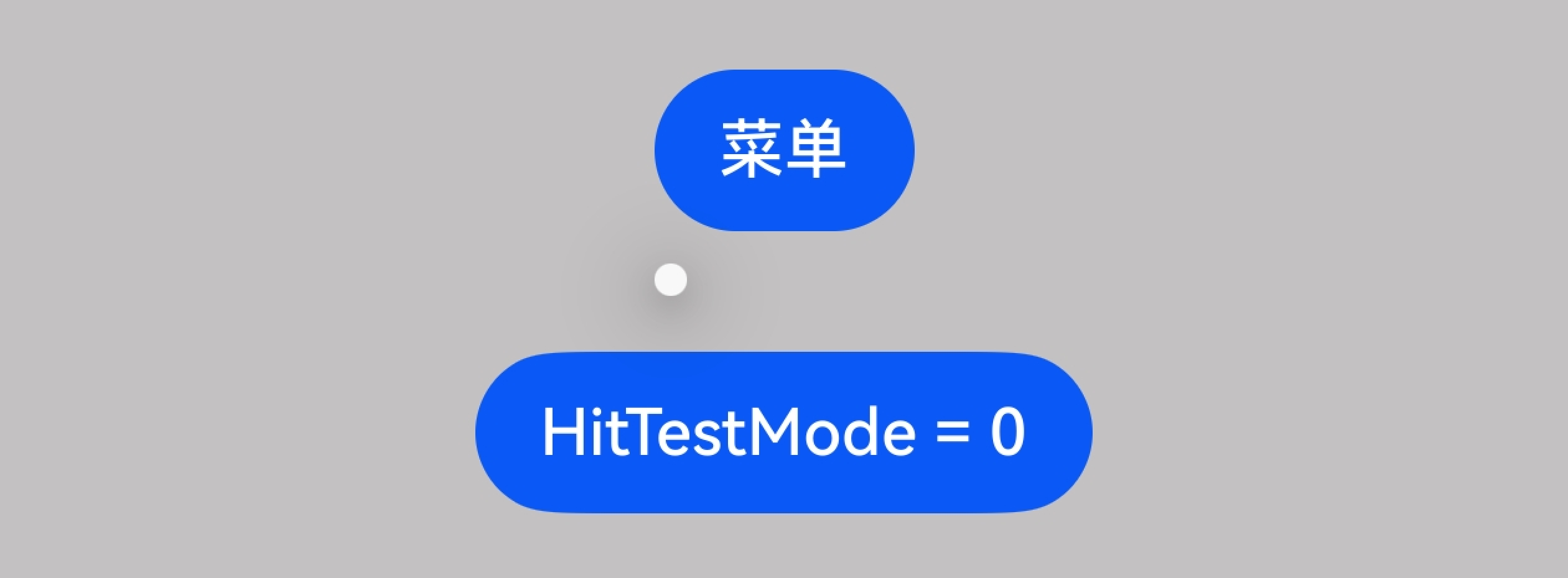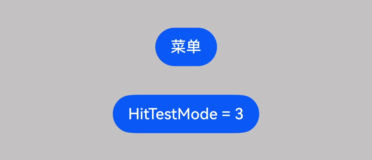 @Entry @Component struct menu { @State hitTestBehavior_param: HitTestMode = HitTestMode.Default @Builder MyMenu() { Menu() } build() { Column({ space: 30 }) { Blank() .height(100) Button('菜单') .bindMenu(this.MyMenu) .hitTestBehavior(this.hitTestBehavior_param) Button('HitTestMode = ' + this.hitTestBehavior_param) .onClick(() => { if (this.hitTestBehavior_param == HitTestMode.Default) { this.hitTestBehavior_param = HitTestMode.None } else { this.hitTestBehavior_param = HitTestMode.Default } }) } .width('100%') .height('100%') .alignItems(HorizontalAlign.Center) .backgroundColor(Color.Grey) } }以下是两种效果图: