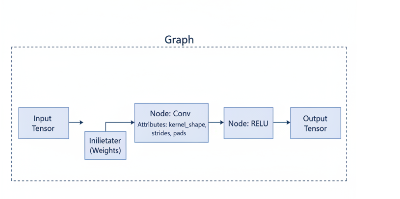 在“翻译”之前,我们必须先读懂“原文”。一个.onnx文件,本质上是一个使用Google Protobuf序列化的数据结构,它描述了一张计算图(Graph)。这张图由以下几个核心元素构成: