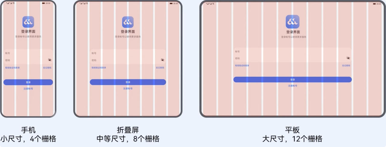 - 针对设备和应用的属性信息(比如显示区域、深浅色、分辨率),设计出相匹配的布局。