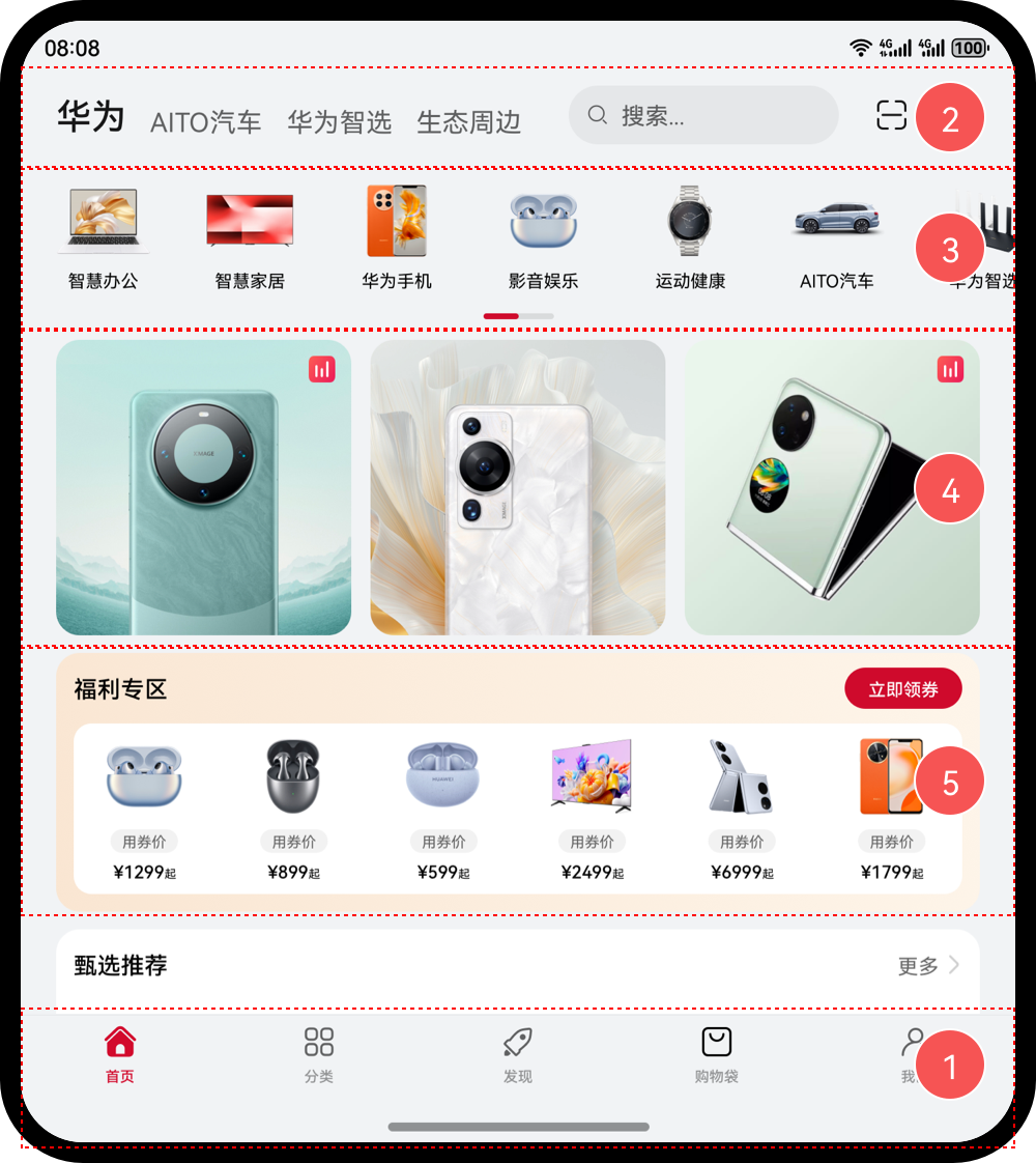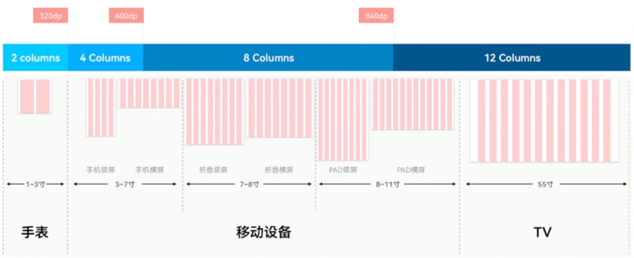 断点以应用窗口宽度为切入点,将应用窗口在宽度维度上分成了几个不同的区间即不同的断点,在不同的区间下,开发者可根据需要实现不同的页面布局效果。