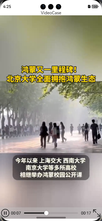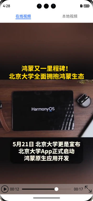 arkUI提供了Video组件可以直接播放视频,并提供自带的播放-暂停 全屏,拖动进度等功能