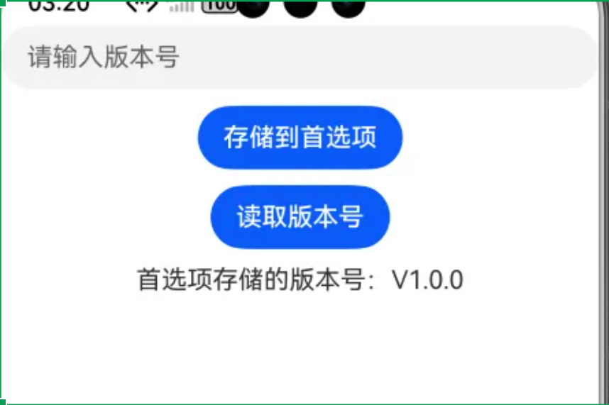 运行 APP,在输入框输入内容(比如 “1.0.0”),点击 “存储”;