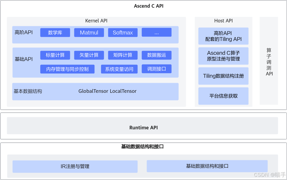 从架构图可以看到,ACLNN 位于 AscendCL (ACL) 接口层之下,是 CANN Runtime 的重要组成部分。
