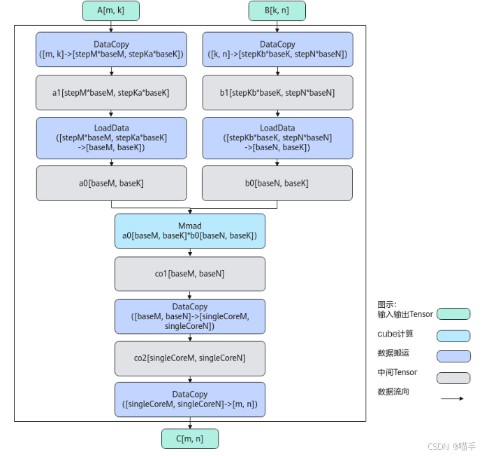- Cube 单元:专用的矩阵乘法加速单元,支持高效的 GEMM(通用矩阵乘法)运算。
