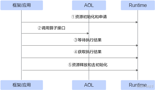 官方为方便开发者调用算子,提供了单算子API执行方式调用算子(基于C语言的API,无需提供IR(Intermediate Representation)定义),以便开发者高效使能模型创新与应用,API的调用流程如下图所示。