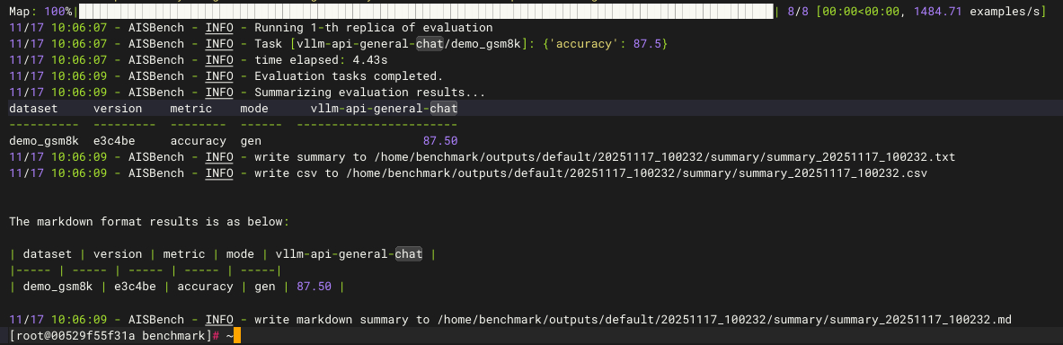 然后在vllm-ascend容器中部署AISBench,具体安装步骤可以参考