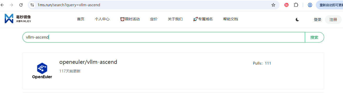 vllm-ascend的docker部署,国内镜像可选用docker.1ms.run