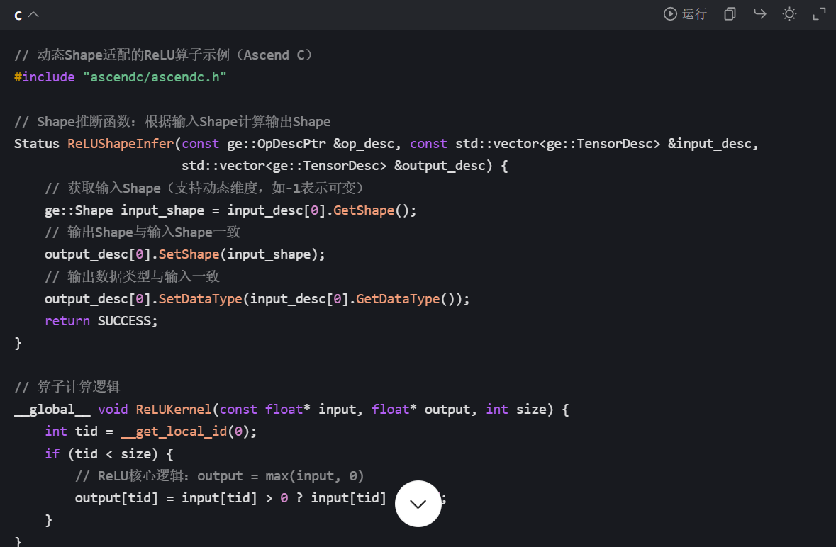 针对 “输入维度不固定” 的场景,训练营会讲解 Ascend C 的 Shape 推断机制,并给出完整代码示例: