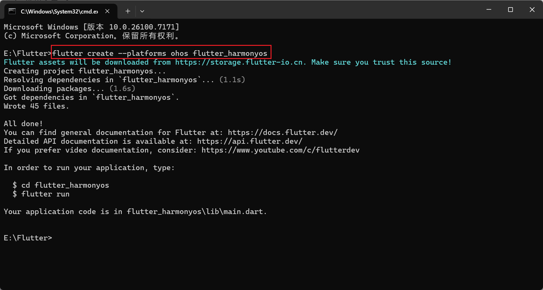 flutter create --platforms ohos flutter_harmonyos