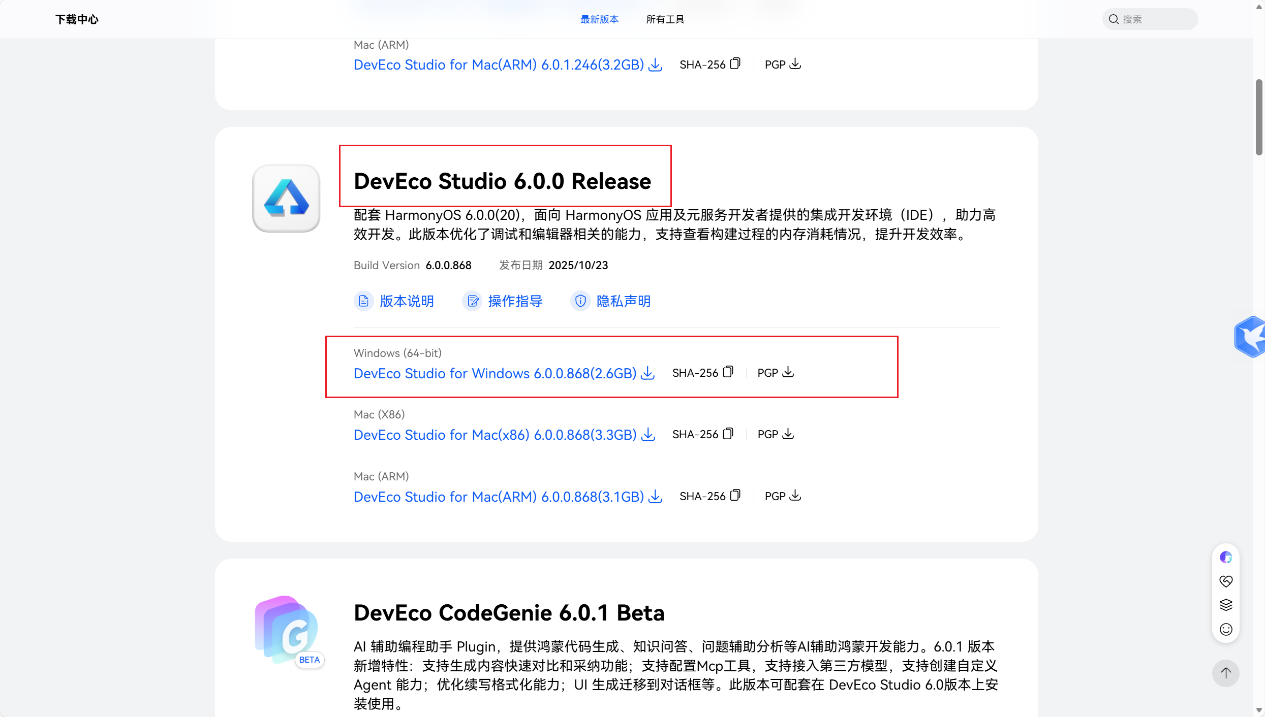 最新版本 - 下载中心 - 华为开发者联盟