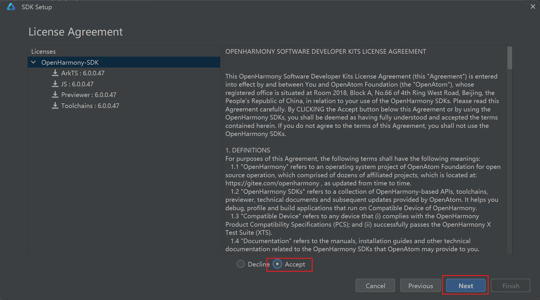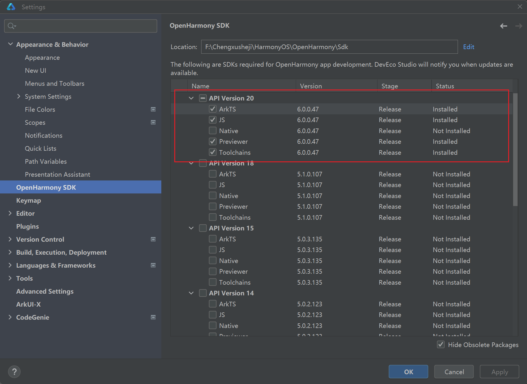 3.设置安装OpenHarmony SDK