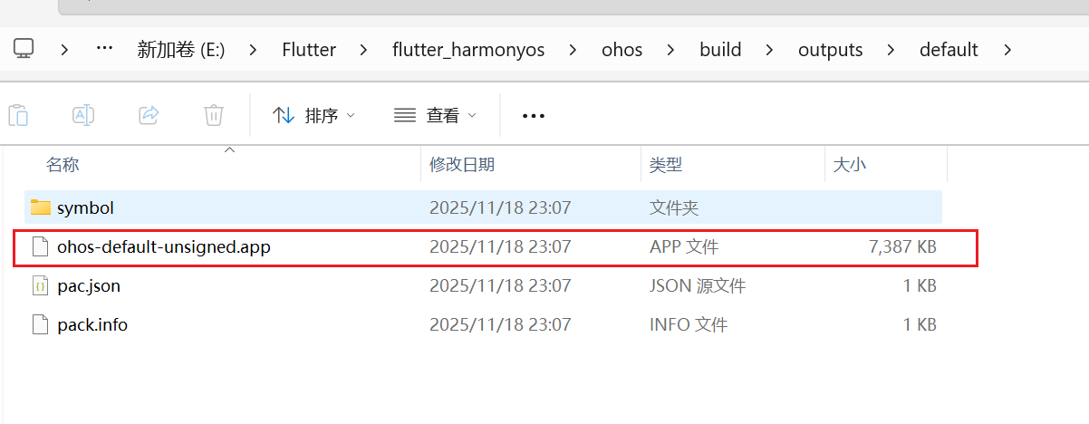 构建完毕后,会显示以下信息,我们就可以在ohos\build\outputs\default目录下找到未签名的hap包