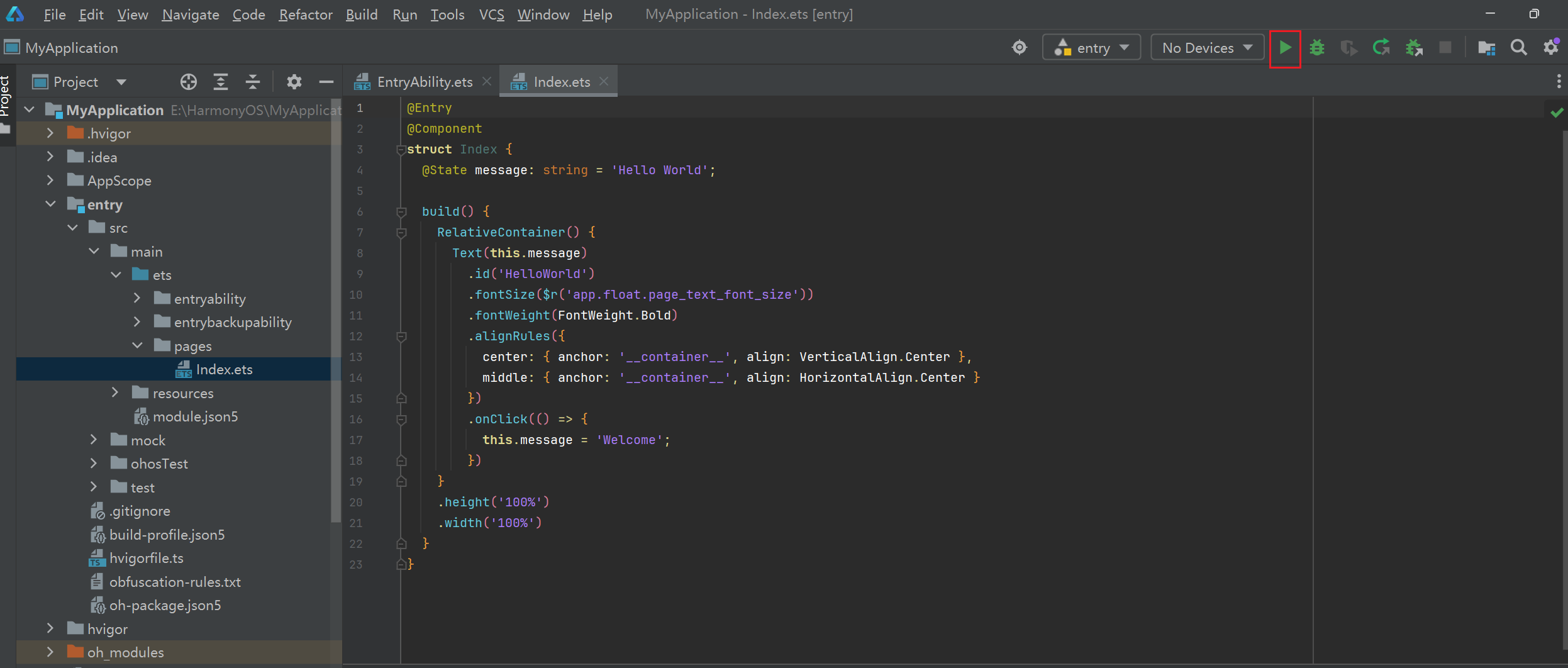 模拟器启动成功后,点击右上角运行按钮,即可在模拟器看见相关页面