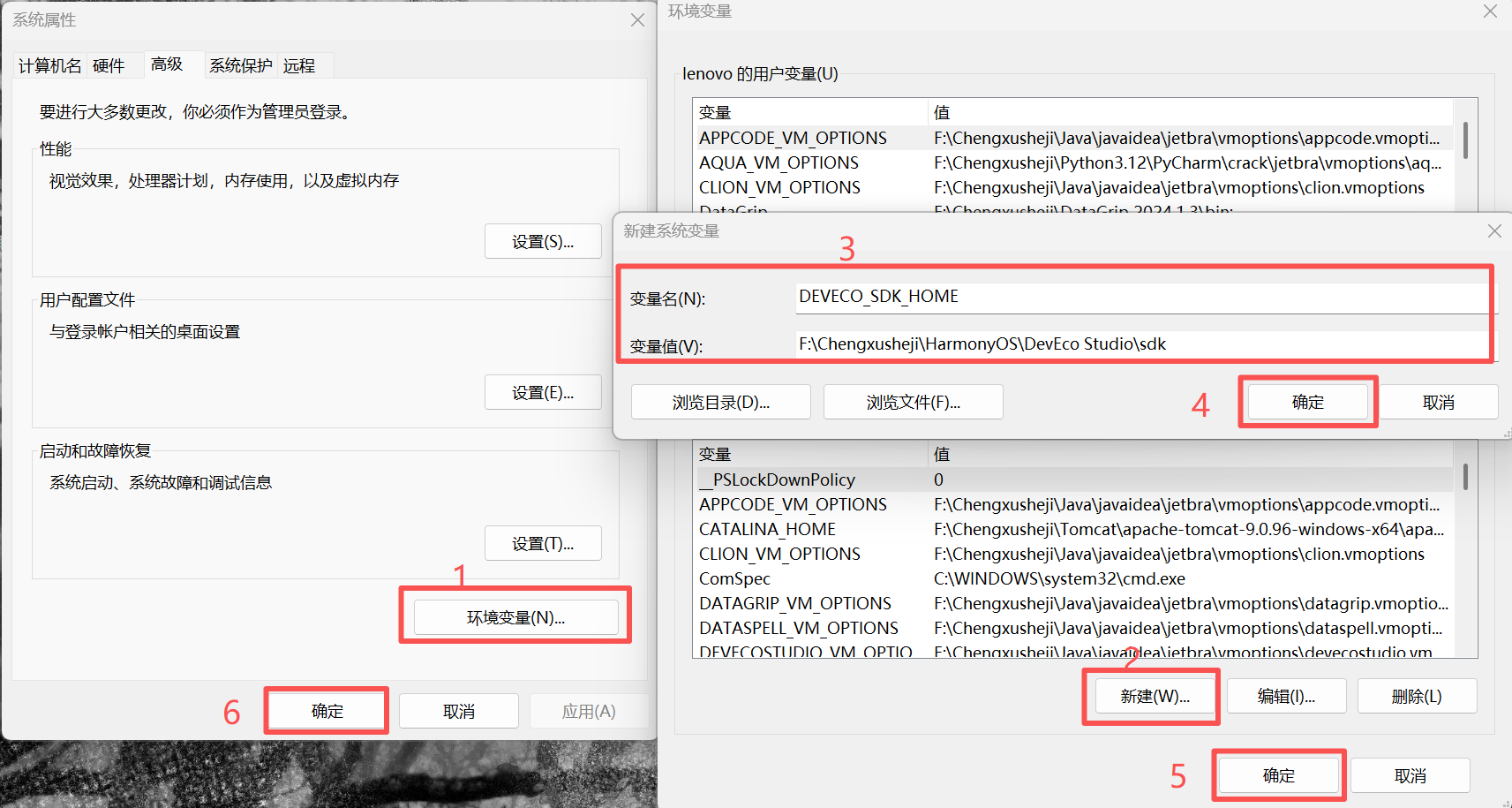 另外,还需要新建DEVECO_SDK_HOME变量,路径为