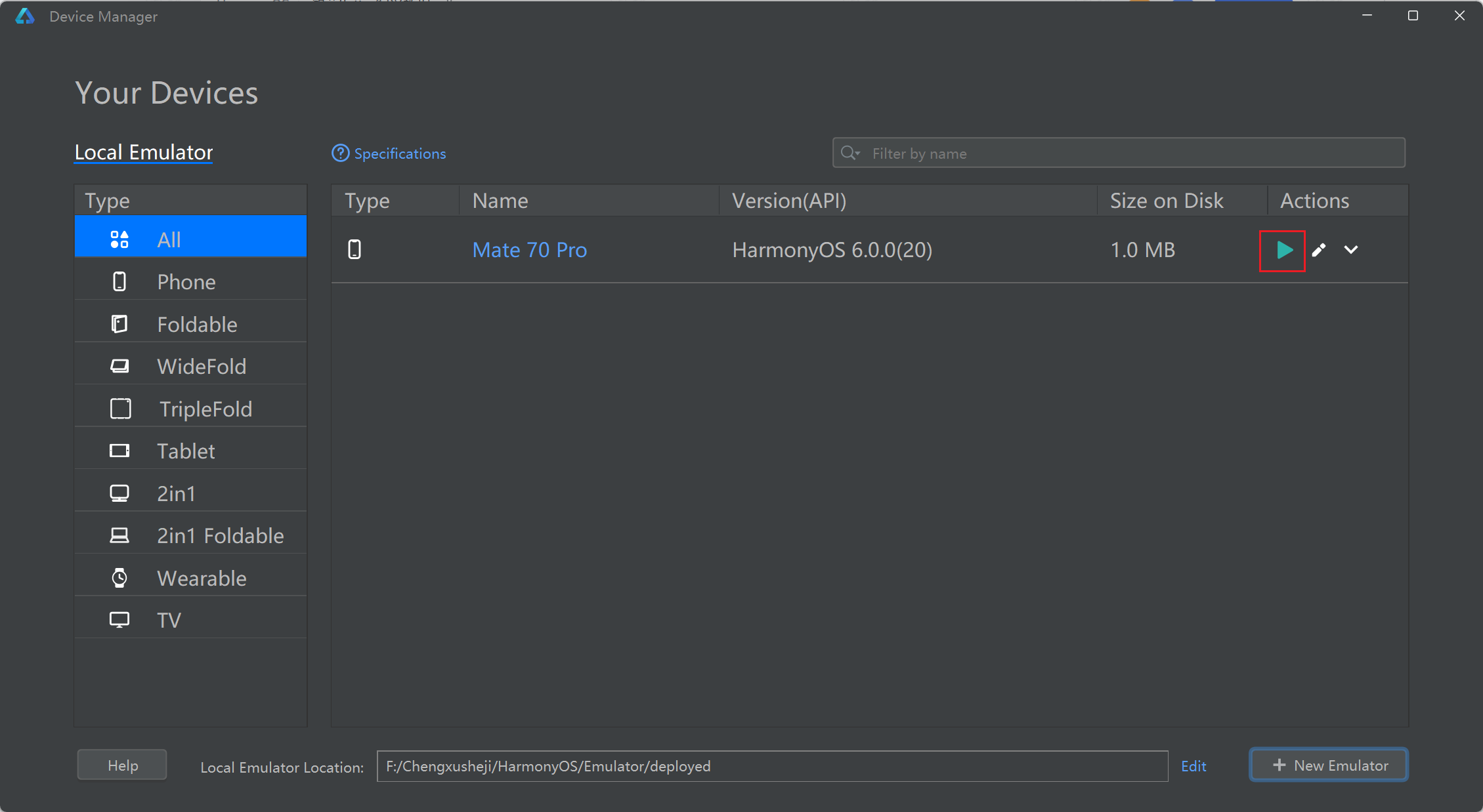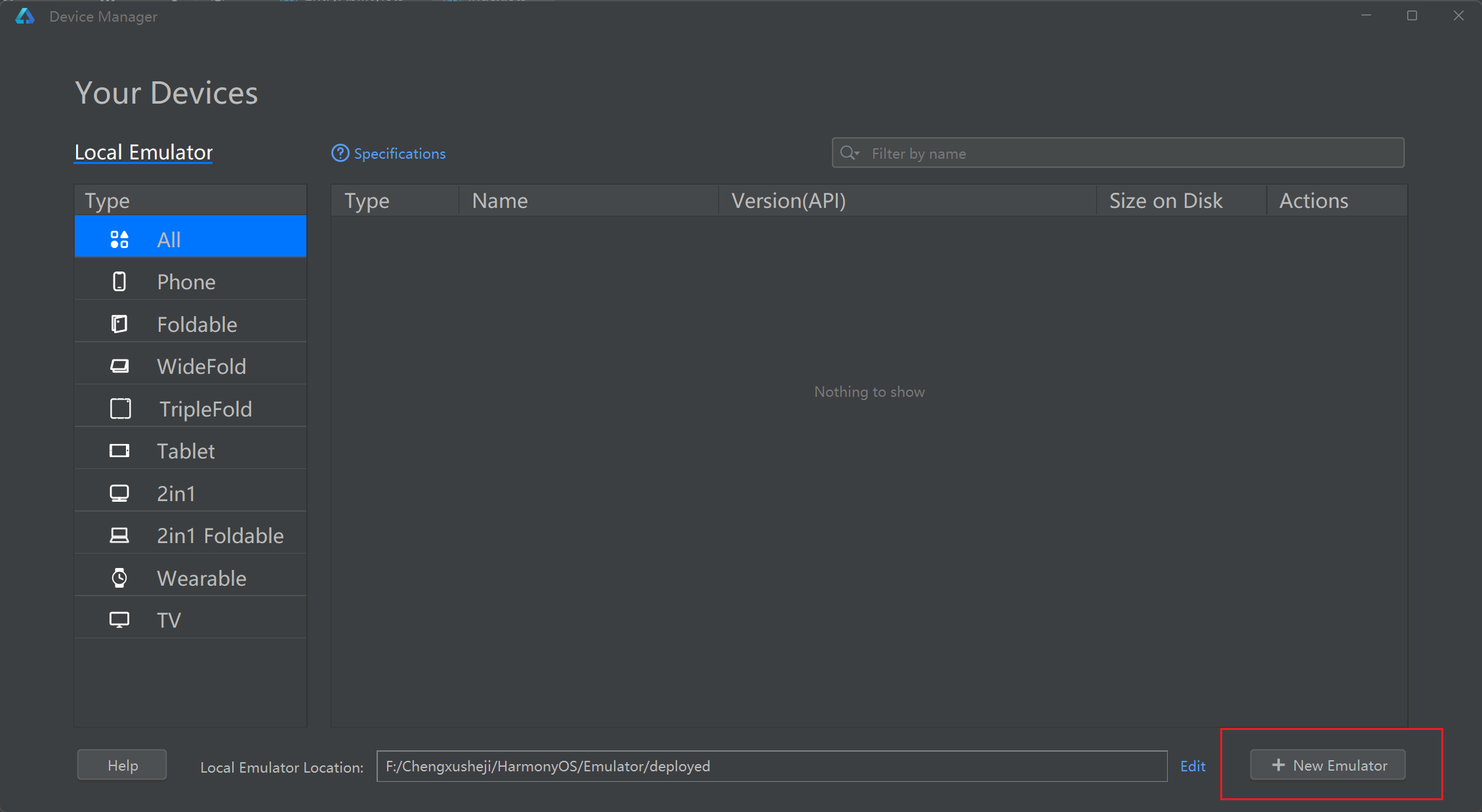接着选择右下角 New Emulator 新建虚拟机: