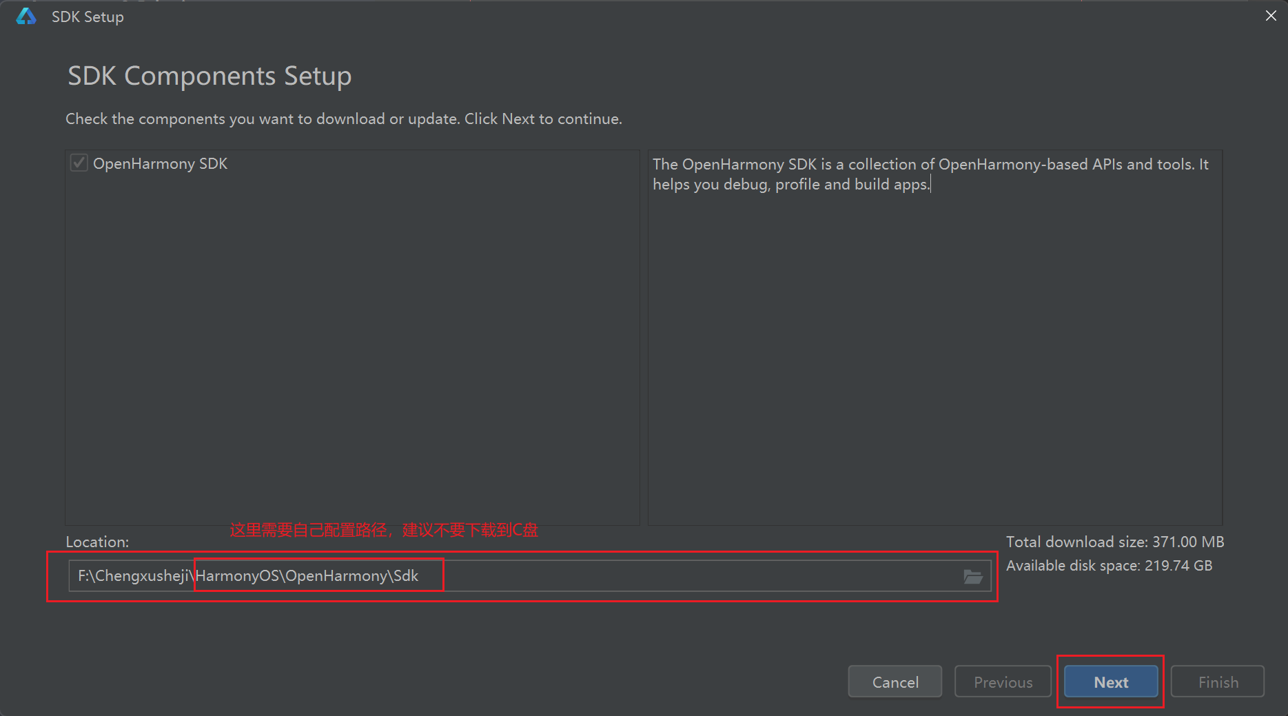 盘号:\你的位置\HarmonyOS\DevEco Studio\sdk