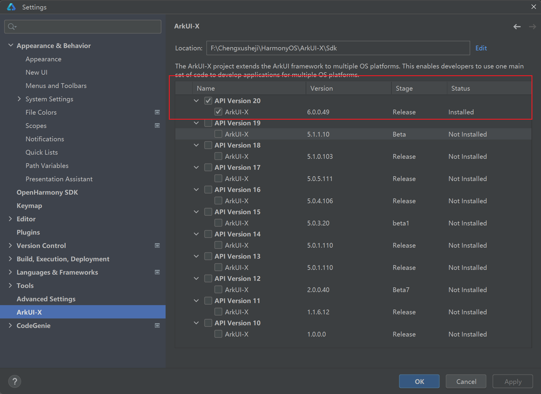 4.设置安装ArkUI-x
