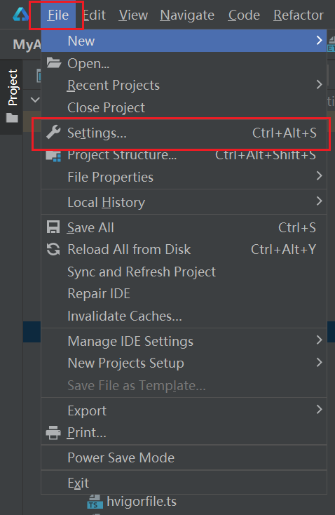 选择左上角 File 下的 Settings