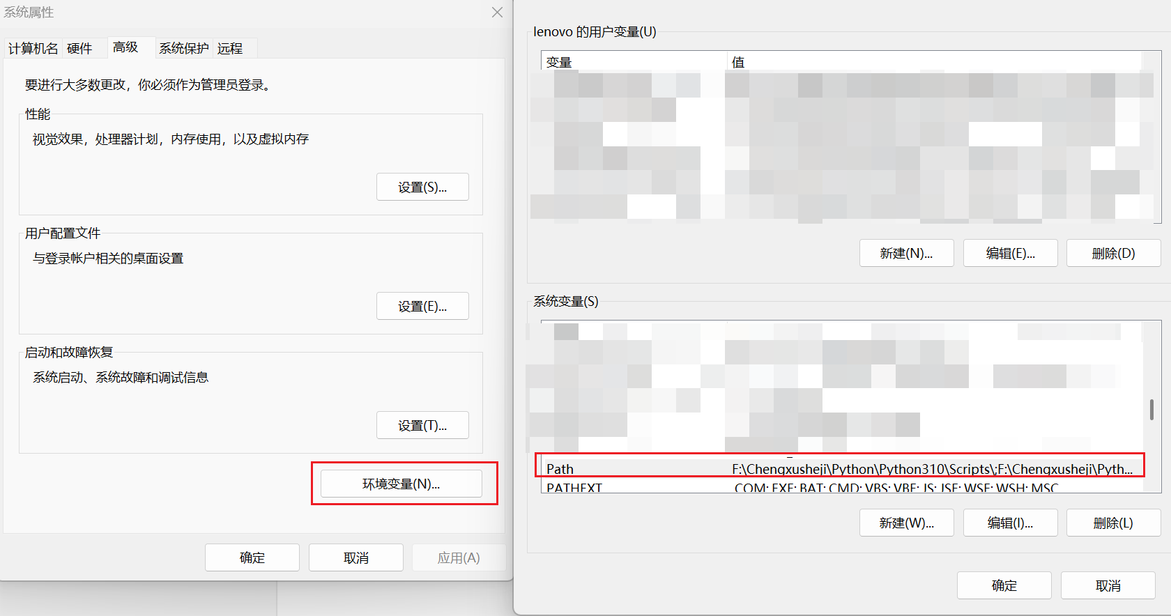 右键点击此电脑,点击属性,再点击高级系统设置,最后点击环境变量