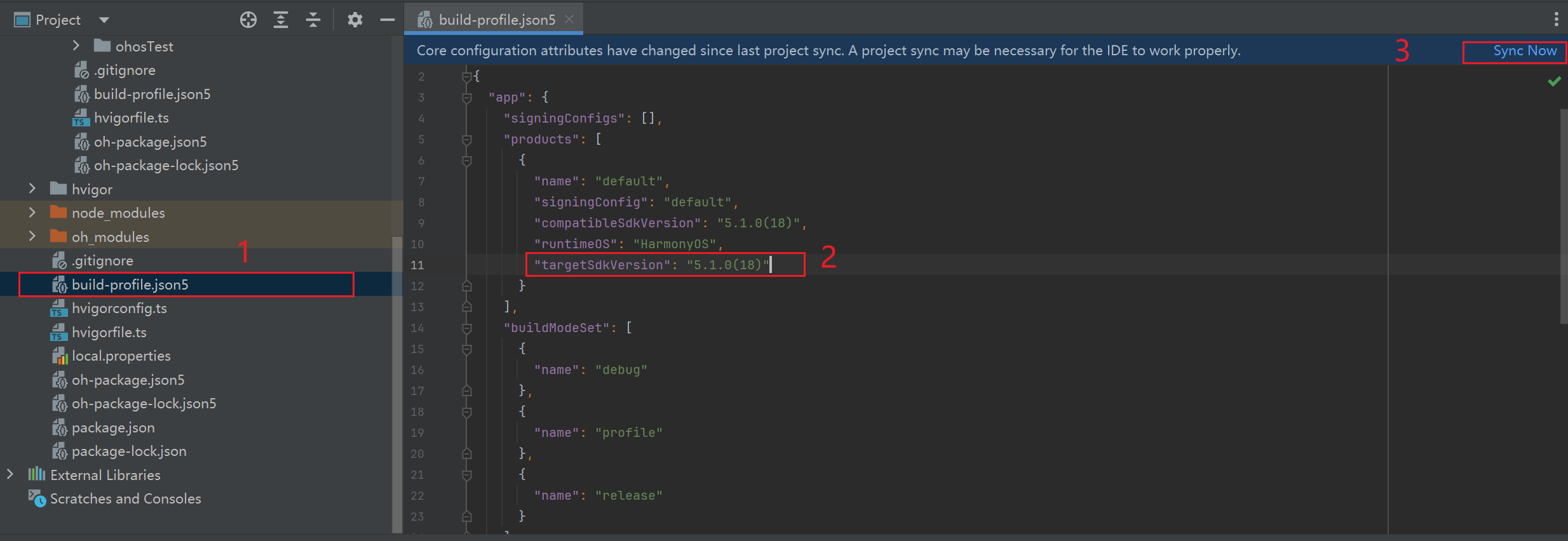 然后打开build-profile.json5添加自己想要编译到的设备的sdk版本