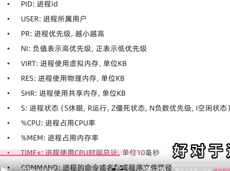 语法:ps [-e -f] (-e:显示全部进程;;-f:以完全格式化的形式展示信息)、ps -ef | grep 指定进程