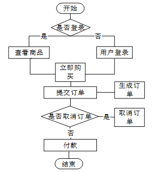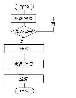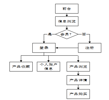 主要业务流程:以用户的身份在登录页面输入账号和密码,经过数据库身份验证,验证成功后登录系统主页,可以使用系统,进行查看产品、搜索产品以及购买产品等功能操作。