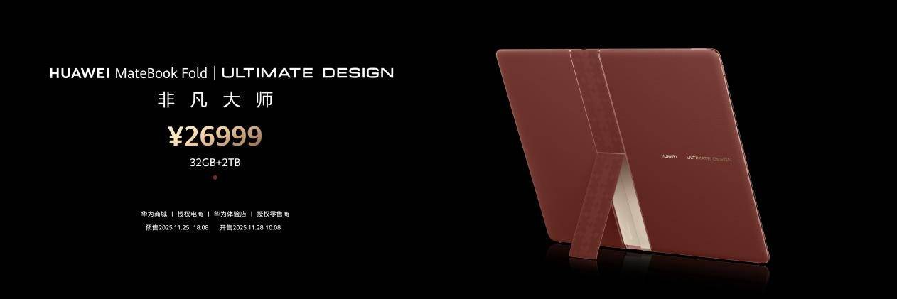 鸿蒙电脑2款机型均支持升级HarmonyOS 6,用户可通过设置 > 搜索“软件更新”> 检查更新进行系统升级。此次全新配色HUAWEI MateBook Fold非凡大师“瑞红”32GB / 2TB版售价26999元,2025年11月25日18:08开启预售,2025年11月28日10:08在华为商城/华为授权电商,华为体验店/华为授权零售商平台全面开售。HUAWEI Care+两年期优惠价3999元。