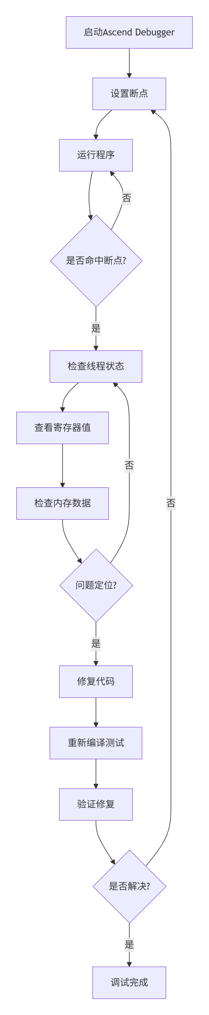 图2:Ascend Debugger调试流程。硬件级调试需要系统性的断点设置和状态检查。