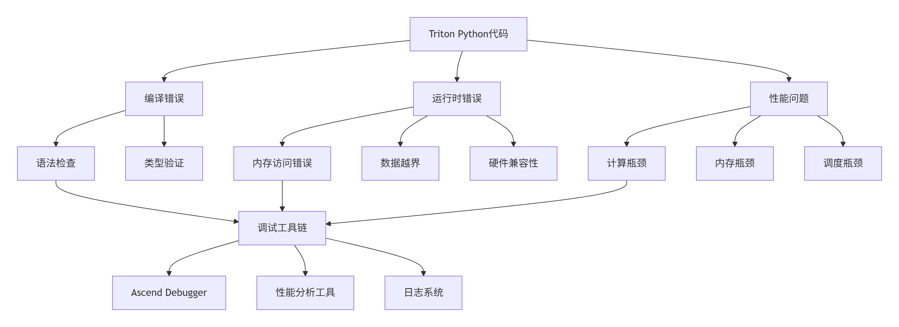 图1:Triton算子调试问题分类与工具映射。不同类型的问题需要针对性的调试工具。