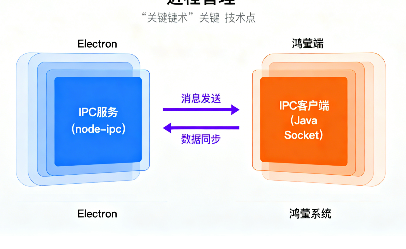 - 打通 Electron 应用与鸿蒙系统的 通信通道(如数据交互、生命周期管理)。