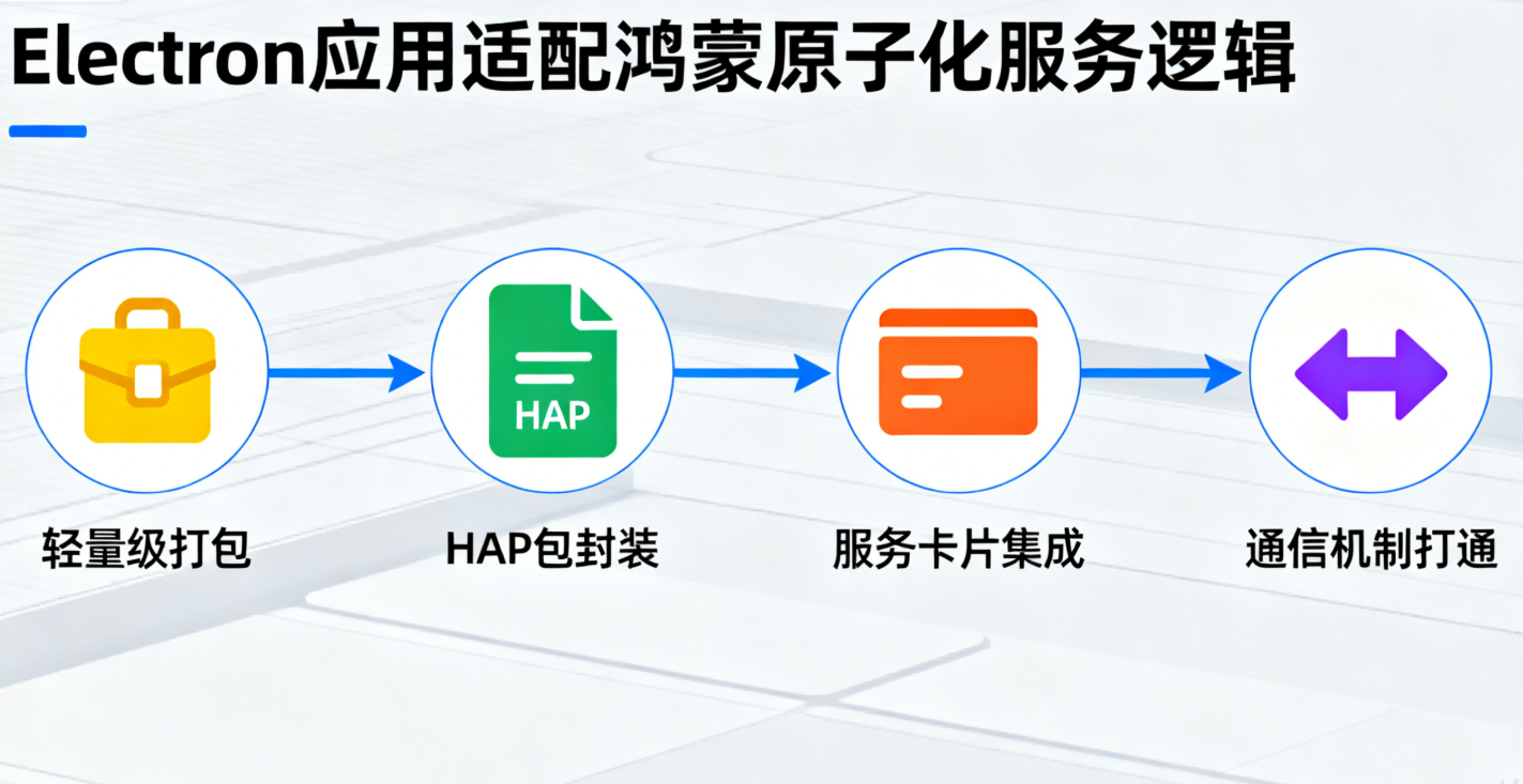 本文将从 技术原理、环境搭建、轻量级打包、服务卡片集成、通信机制、实战案例、问题排查 七个维度,全面解析 Electron 应用适配鸿蒙原子化服务的完整流程,附带可直接复用的代码片段和官方文档链接,助力开发者快速落地适配工作。