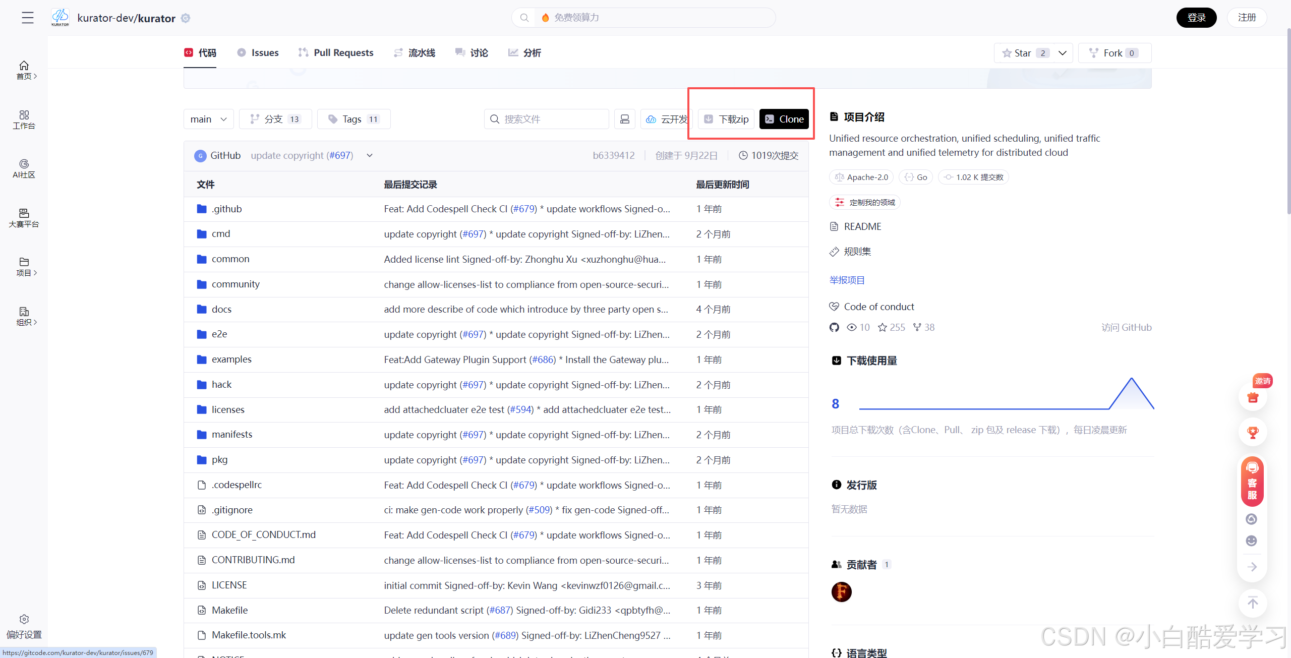 作为华为的开源项目,对于Kurator项目也上了热门开源项目榜:
