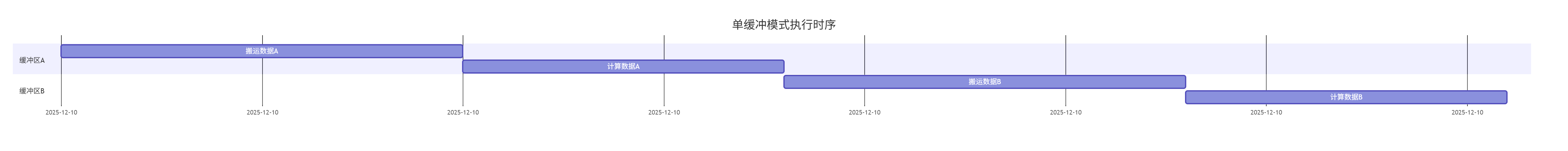 关键瓶颈识别:在典型的AI计算中,数据从Device DDR到Local Memory的搬运时间往往占据60%-70% 的核函数执行时间。传统的单缓冲模式下,计算核心在等待数据搬运时完全空闲,硬件利用率极低。