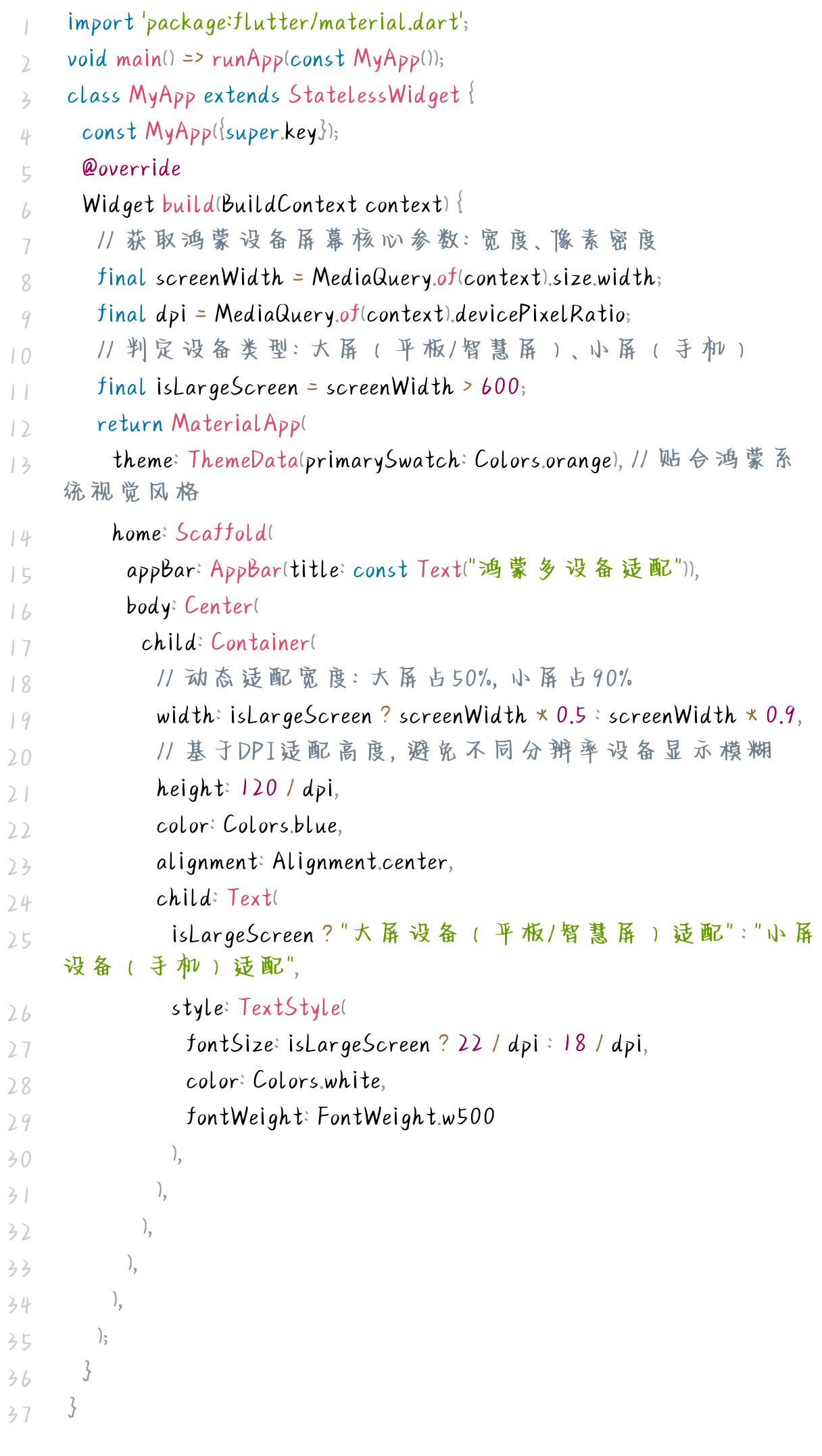 - 清晰度保障:通过「除以像素密度(dpi)」适配高度与字体,避免高分辨率设备出现模糊问题,符合鸿蒙设备显示规范;