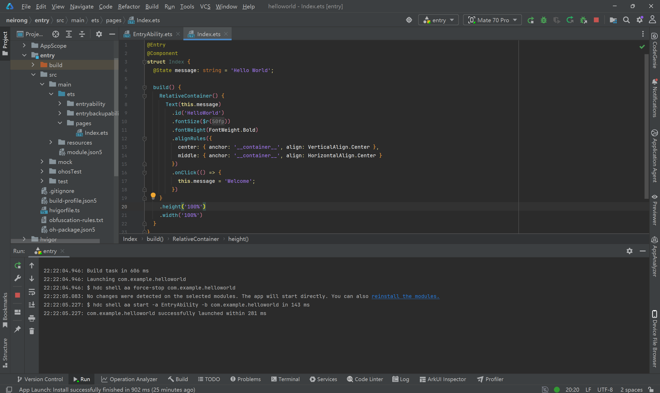 测试 DevEco Studio 是否成功运行的方法