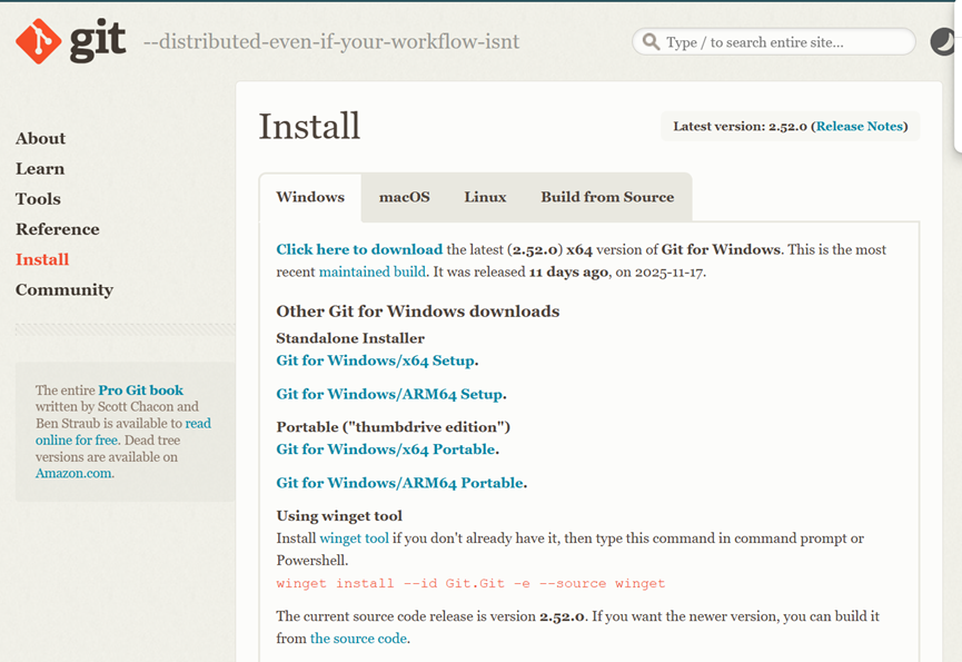 从Git官网下载最新版本安装包: https://git-scm.com/downloads
